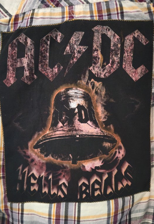 Upcycled hand-sewn Flannel featuring the Band, AC/DC.