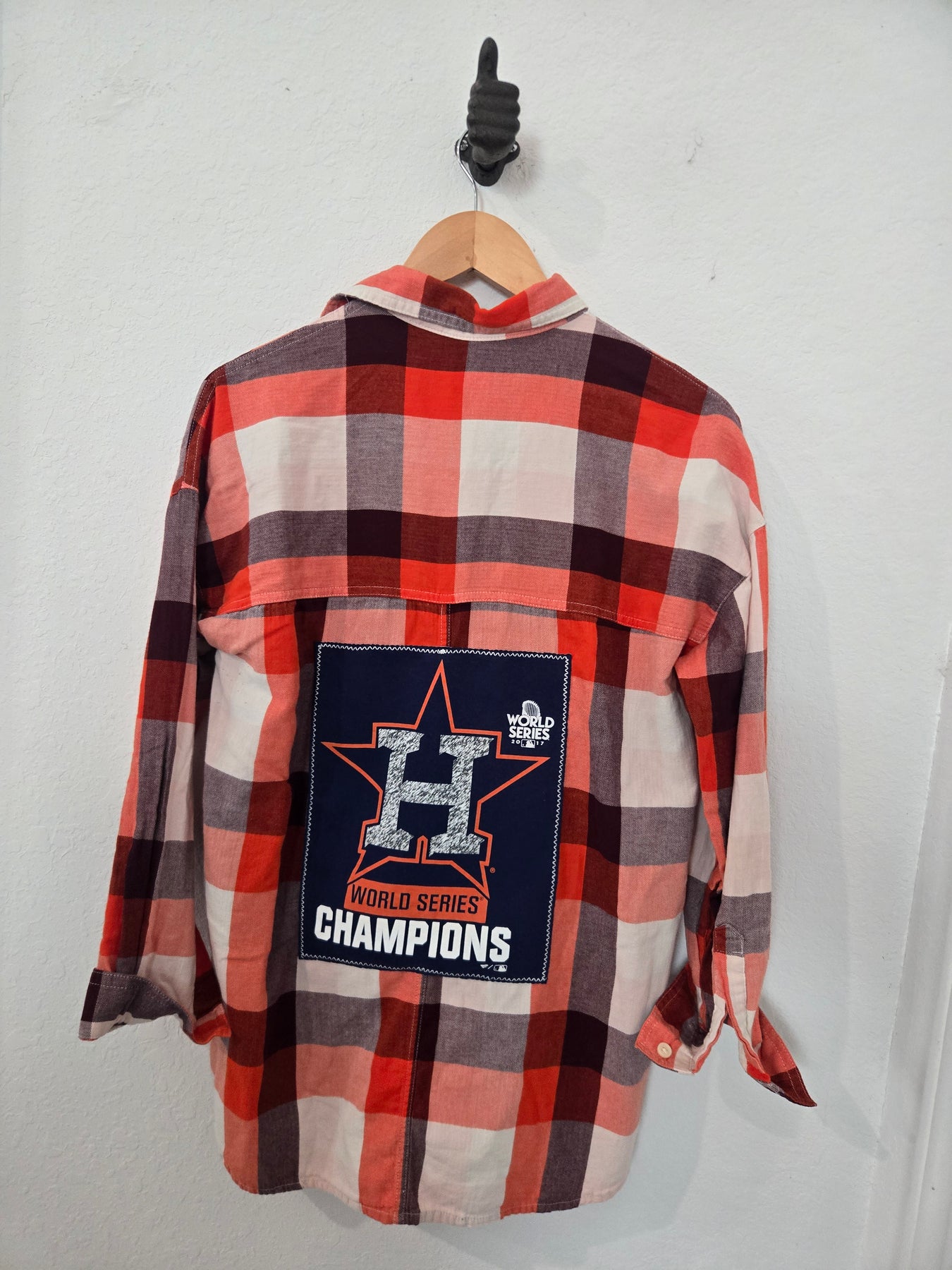 Upcycled, hand-sewn, Flannel featuring the Houston Astros.