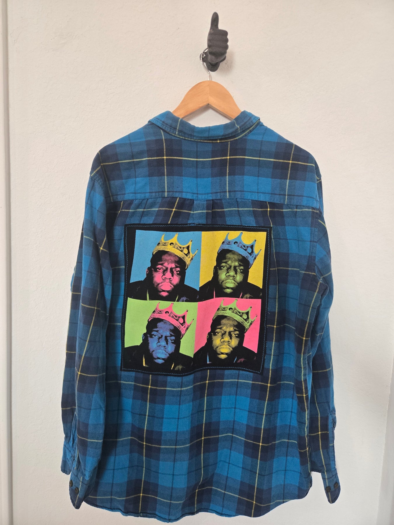 Upcycled hand-sewn Flannel featuring the Notorious B.I.G.