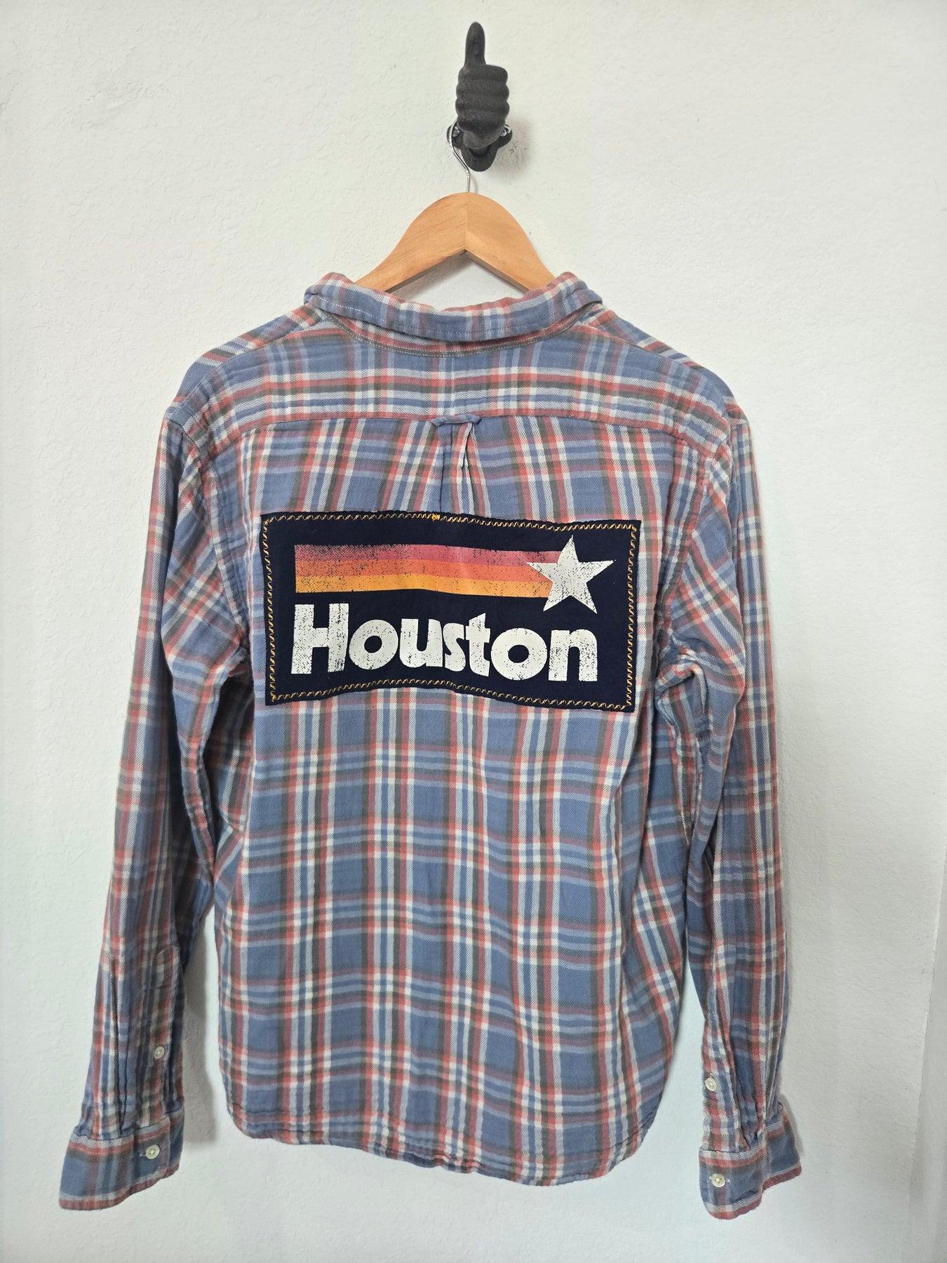 Upcycled, hand-sewn, Flannel featuring Houston Astros.