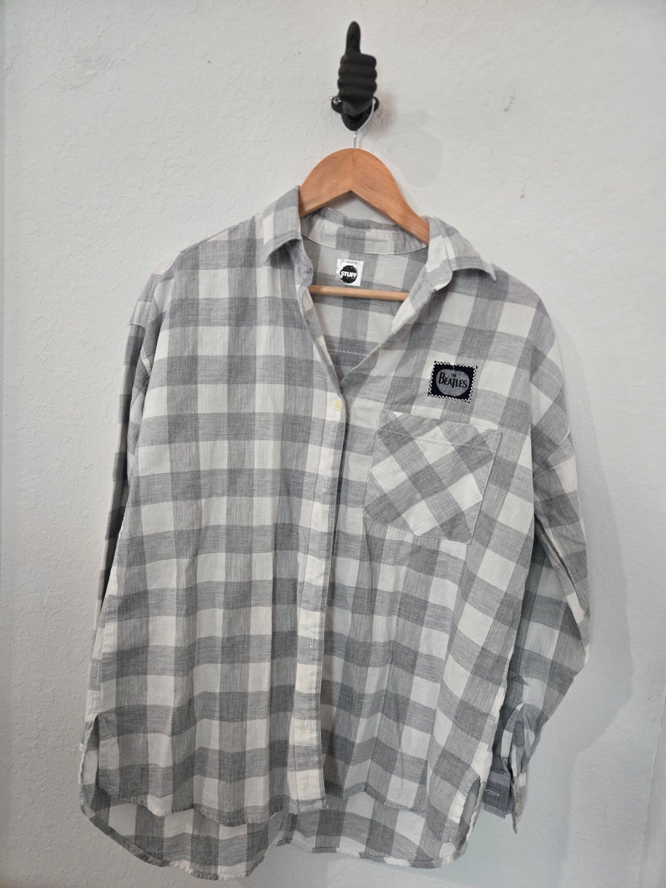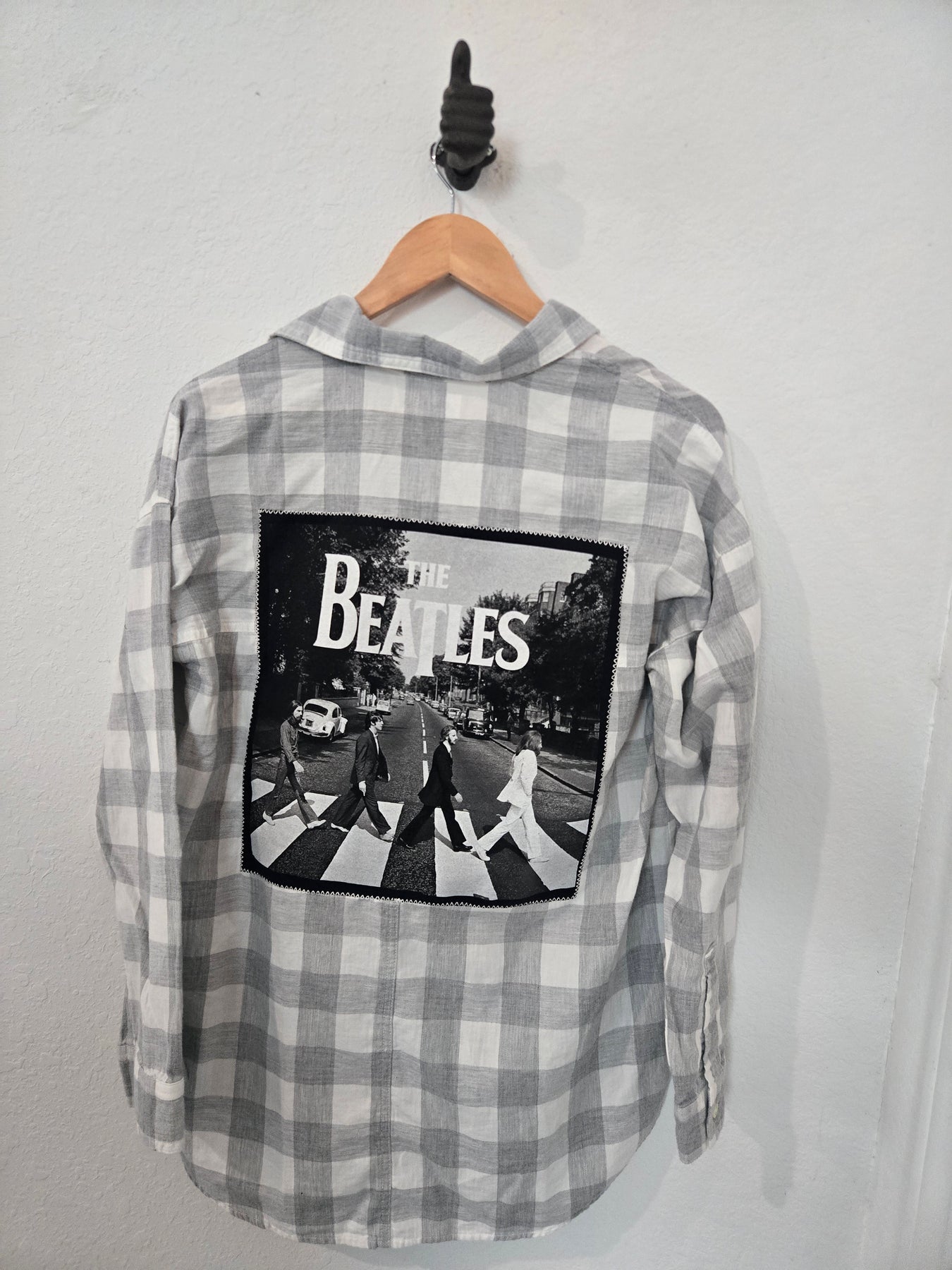 Upcycled, hand-sewn, Flannel featuring The Beatles.
